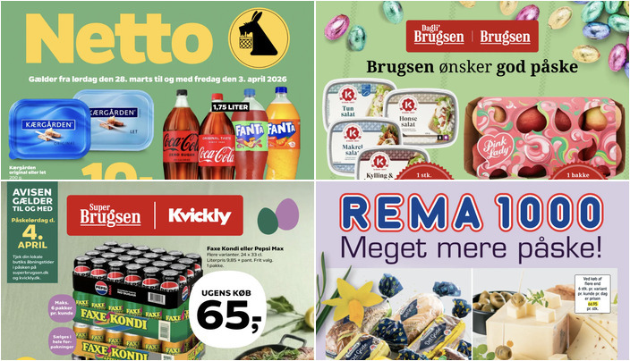 SuperBrugsen tilbyder en pakke med 24 x 33 cl Faxekondi eller Pepsi Max til en pris af 65 kr. pr. pakke. Dette tilbud gælder fra fredag den 27. marts til lørdag den 4. april.